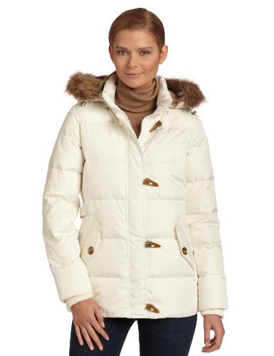 Tommy Hilfiger Women's, This down filled jacket from tommy hilfiger is perfect for fall and winter, wear it casually everyday or use for outdoor winter sports, it is water repellant and sure to keep you cozy and warm, the plush valboa lined hood with faux fur trim zips off to convert this jacket from sporty to dressy, at 28 inches long this coat hits at the mid thigh, a chunky, easy to use front zipper closure is concealed with a placket and toggle closures, side entry pockets have a button over flap to keep your posessions secure, side tab details give off a slimming appearance around the waist, knit storm cuffs keep your arms warm, fully lined with an added plush valboa half back lining, machine washable