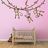 Here are some of the great features of Girl Monkey Wall Decal for Baby Nursery or Kid's Room- Size is 86" wide by 44" tall