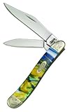 Case Cutlery 9207SG/E Case Sapphire Glow Corelon Engraved Mini Trapper Pocket Knife with Stainless Steel Blades, Blue, Gold and Green mixed Corelon